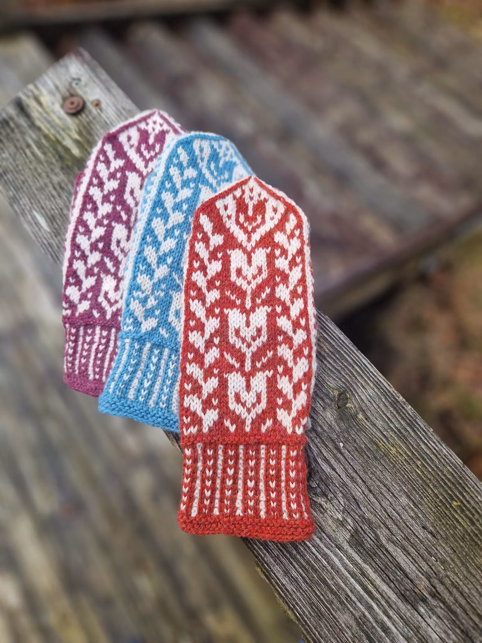 Innehåll vantkit: mönsterbeskrivning i pappersform samt två garnnystan, 50 g vardera