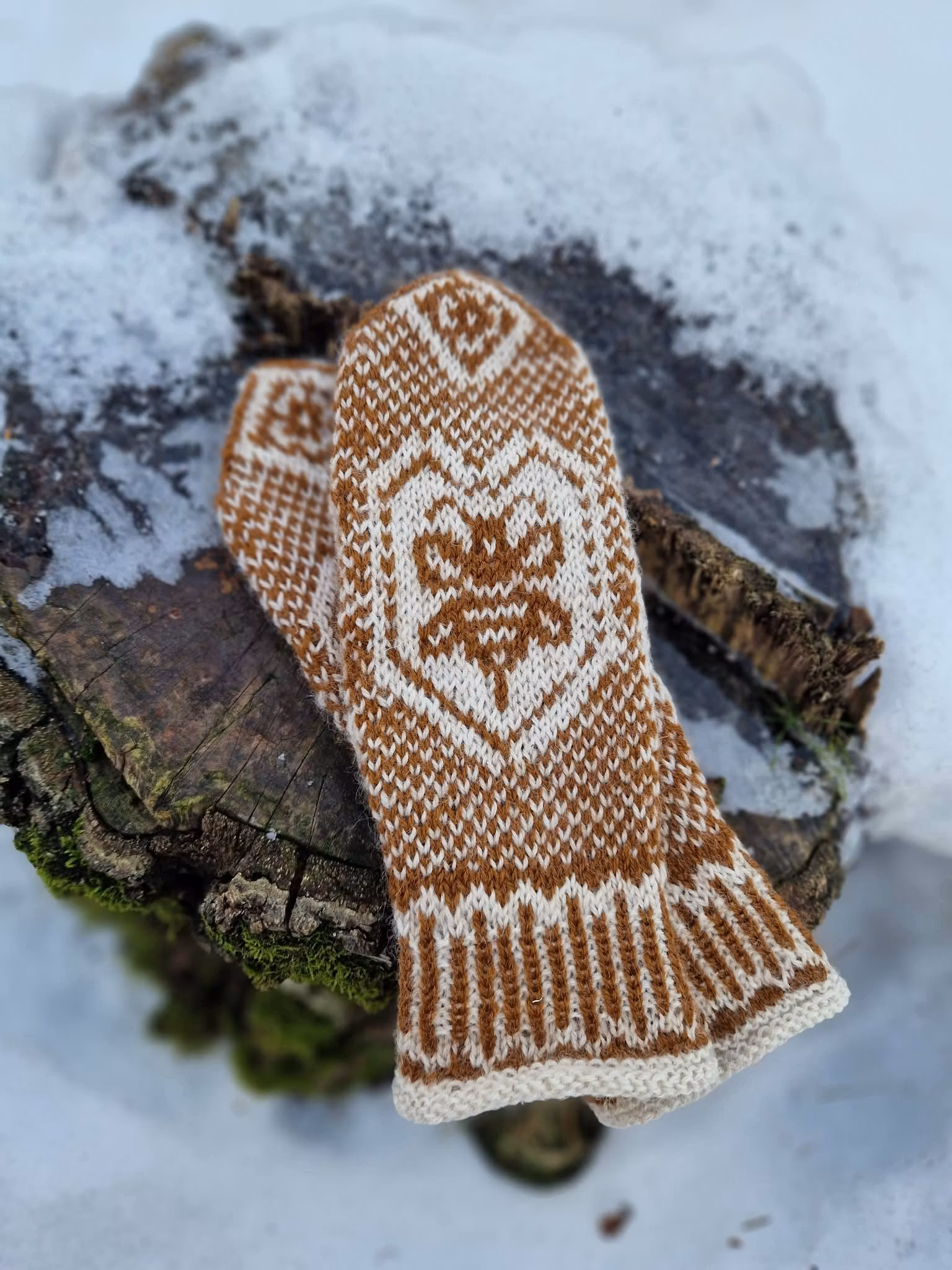 Innehåll vantkit: mönsterbeskrivning i pappersform, två garnnystan 50 g vardera