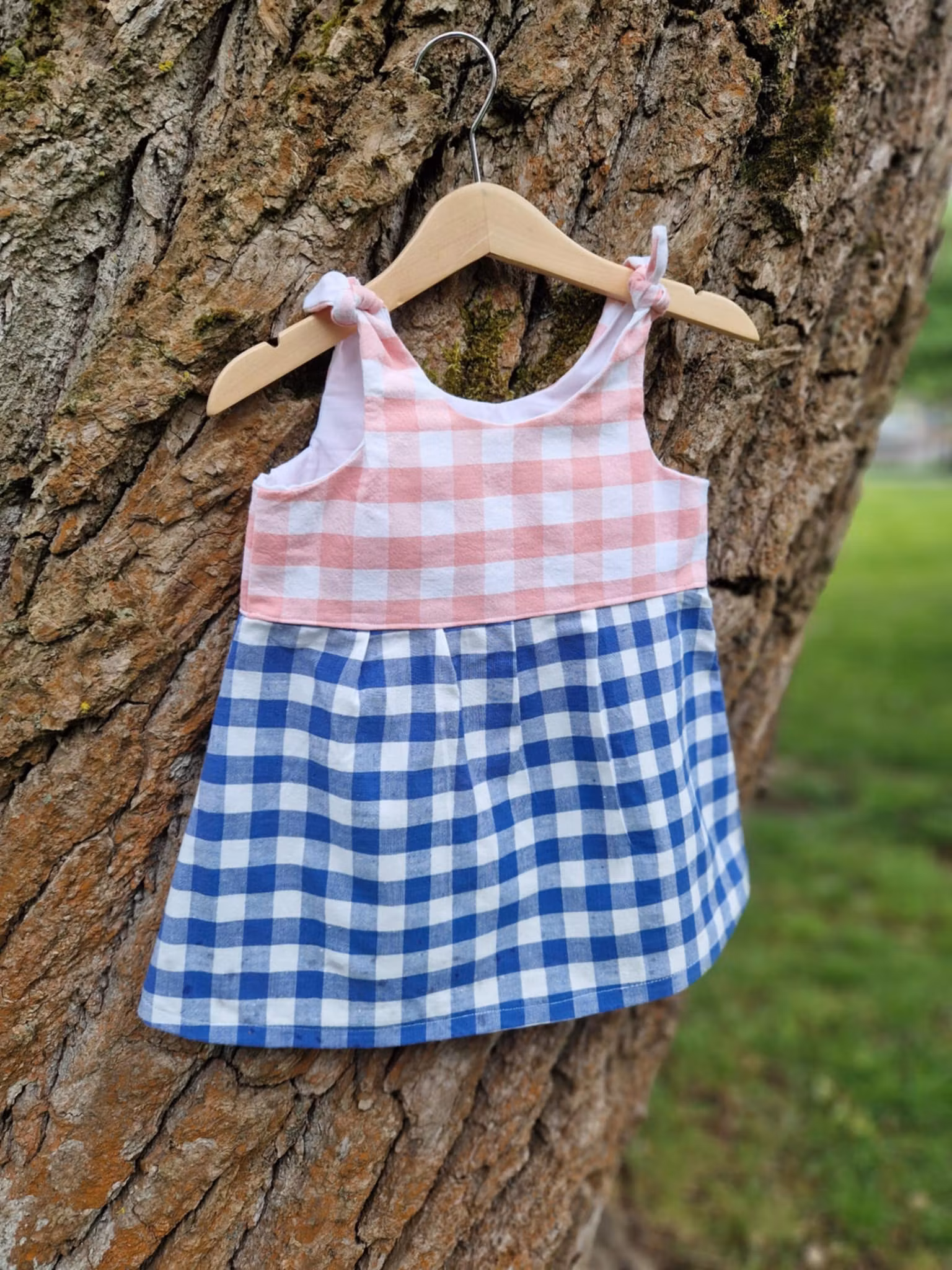 Klänning är unik i storlek och utseende och finns bara i ett exemplar. Sydd i återbrukade vintage/retro tyger.