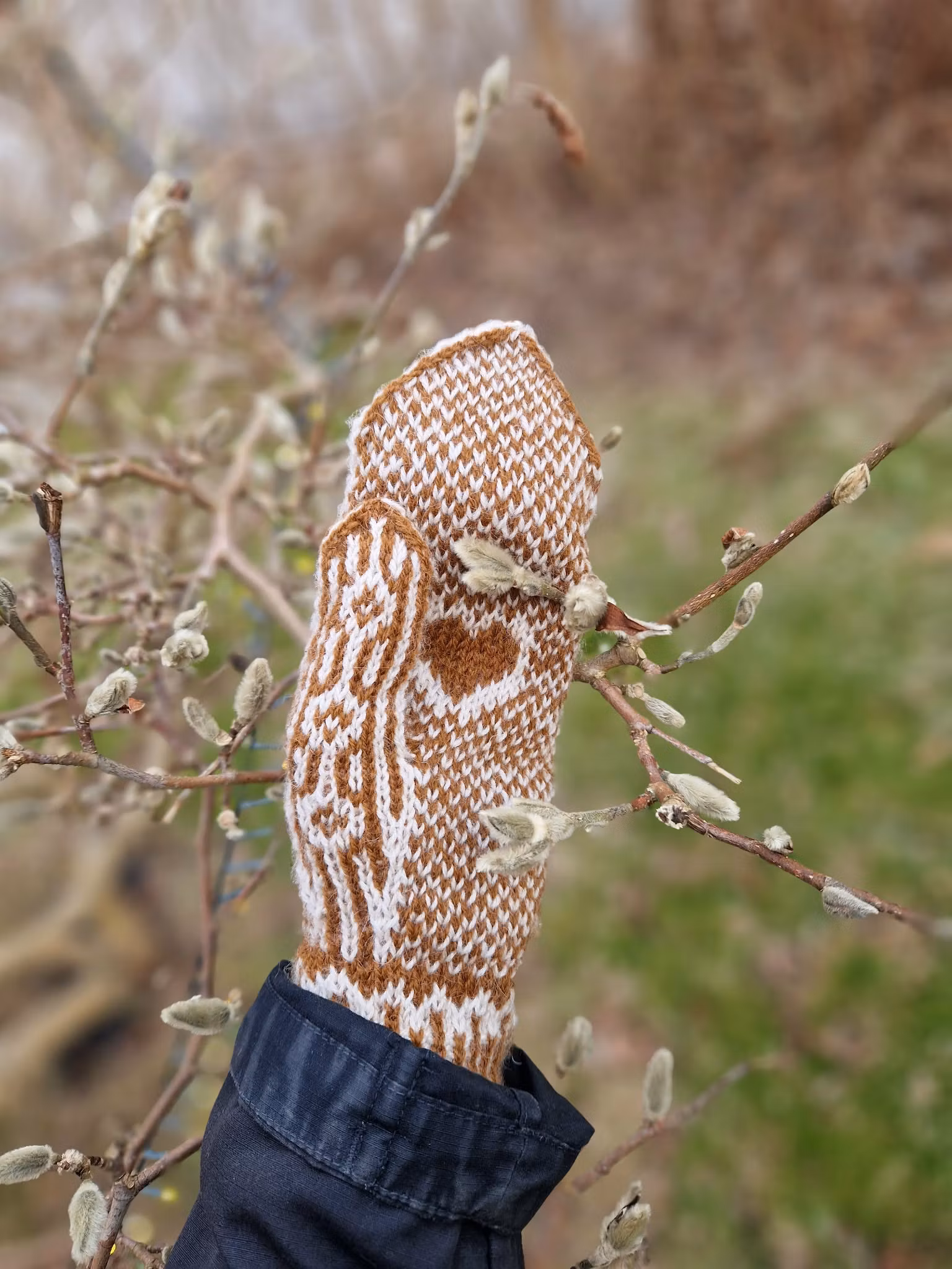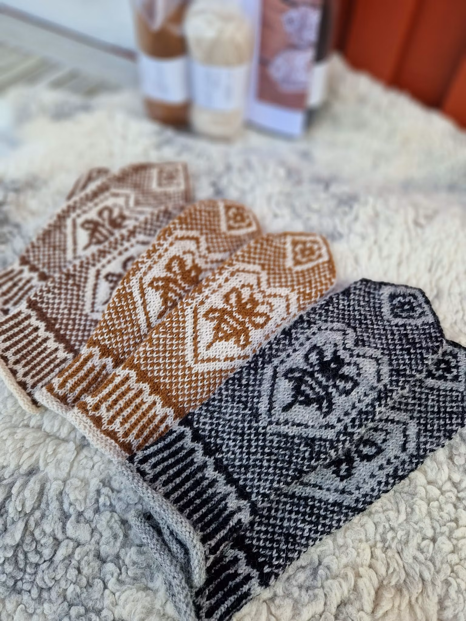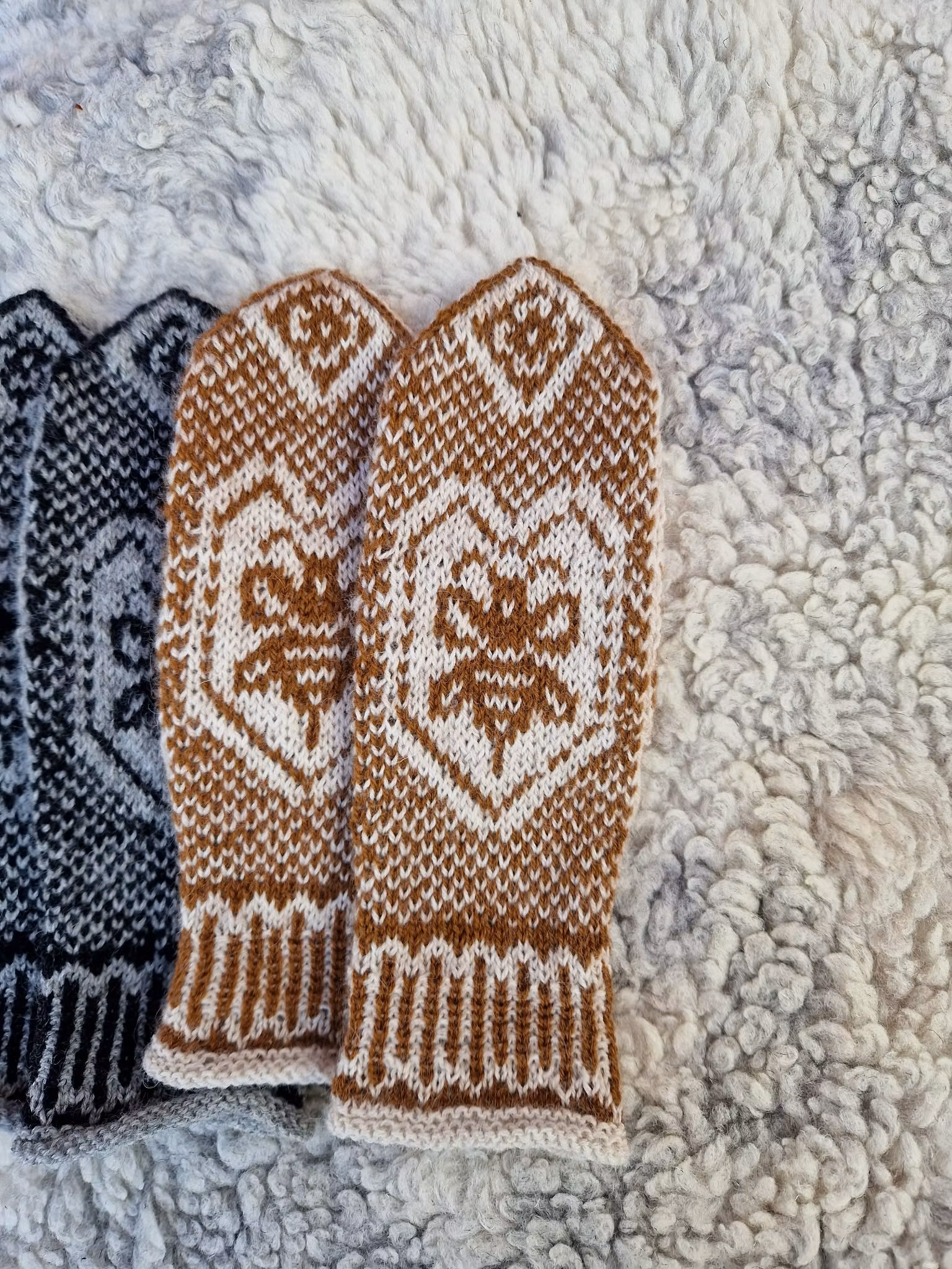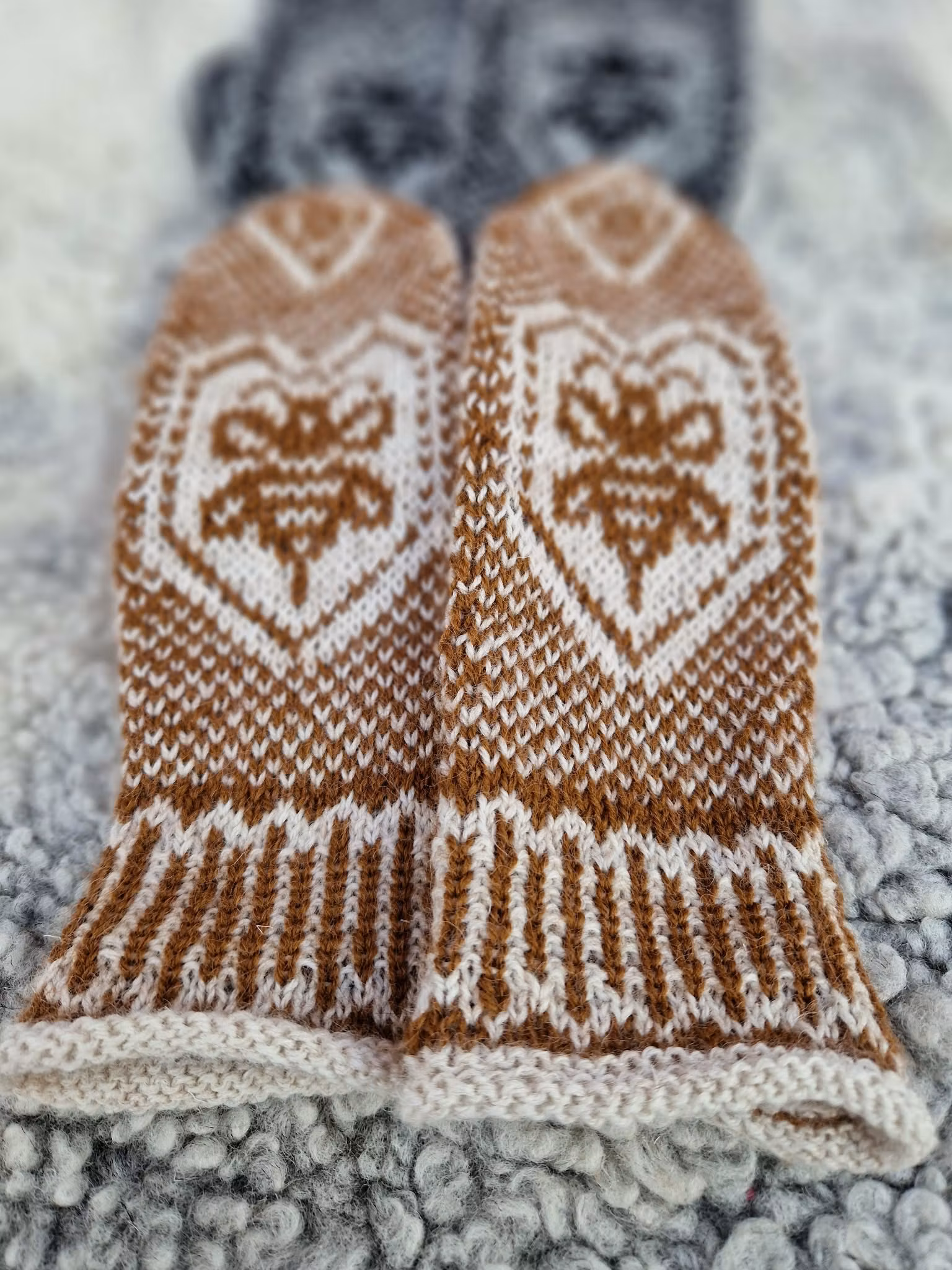 Vanten My Beeloved är tunn flerfärgsstickad vante med tumkil som kommer i två storlekar, dam/herr. Perfekt present till biodlaren eller kanske någon du håller kär…